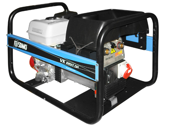 Агрегат сварочный SDMO VX 220/7,5 H-S прочные и удобные в эксплуатации бензиновые и дизельные автономные сварочные агрегаты SDMO, оснащены полным сварочным комплектом, обеспечивают силу постоянного тока до 300А и мощность до 7.15 кВт. Высокий класс защиты делает работу по сварке приятной и безопасной. Сварочные агрегаты SDMO оснащены генераторами и могут быть использованы как обычные источники электроэнергии 230V/400V 50 Гц.