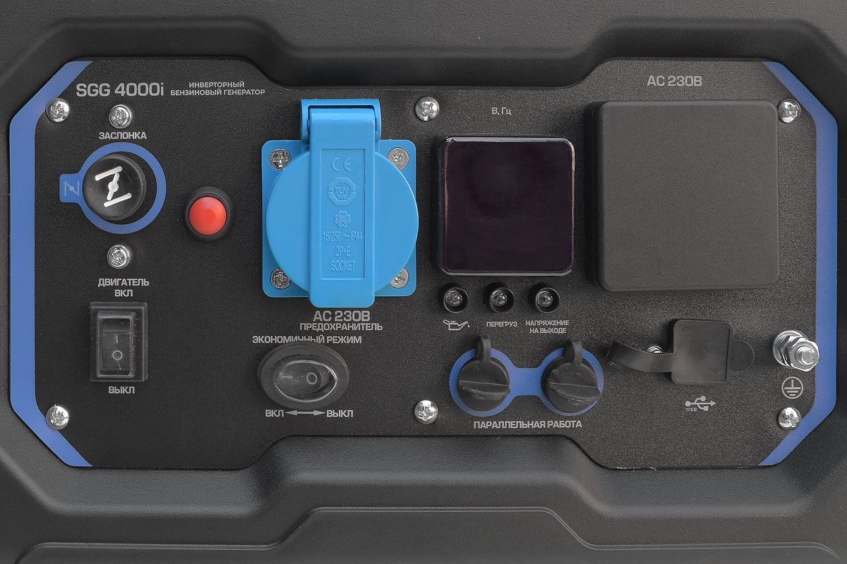 Бензогенератор инверторный SGG 4000i вырабатывает электричество с высокой точностью частоты и напряжения. Предназначен для подключения к нему потребителей общей максимальной мощностью до 4,0 кВт. Позволяет напрямую подключать к генератору как обычных потребителей, так и точное электронное оборудование, например, ноутбуки, LCD-телевизоры или смартфон.