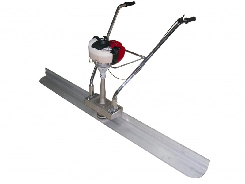 - Плавающую виброрейку – самый простой и доступный для каждого вариант. Конструкция элементарна: алюминиевое правило, ручки и двигатель с мощностью не более 1,2 кВт. Работать может один человек без дополнительной помощи. Площадь работ (длина правила), как правило, составляет не более 3 метров, а толщина бетона – 18 см.